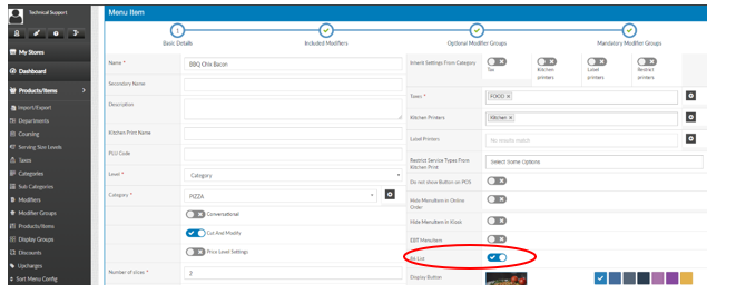 Select “Products/Items”, “Products/Items” and then enable “86 List”