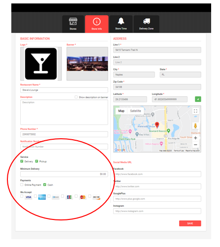 NOTE: All sections must be selected (Store Hours, Delivery Time, and Pick Up Time)Select “Delivery Zone” to confirm your zones for Delivery